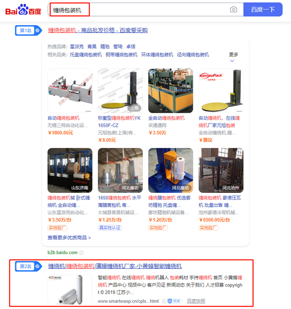 江蘇小黃蜂智能纏繞包裝設備營銷型網站SEO優化案例