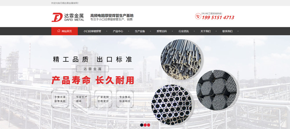 【公司簡介】:無錫達(dá)霏金屬材料有限公司創(chuàng)建于2015年,專業(yè)生產(chǎn)小口徑厚壁管,廠房建筑面積為3000平方米。年生產(chǎn)能力1.5萬噸。可生產(chǎn)內(nèi)口徑:Φ2.0mm-6.0mm,外徑:20.0mm-42.0mm,壁厚:2.0mm-6.0mm之 間的各種不同材質(zhì)的焊管。